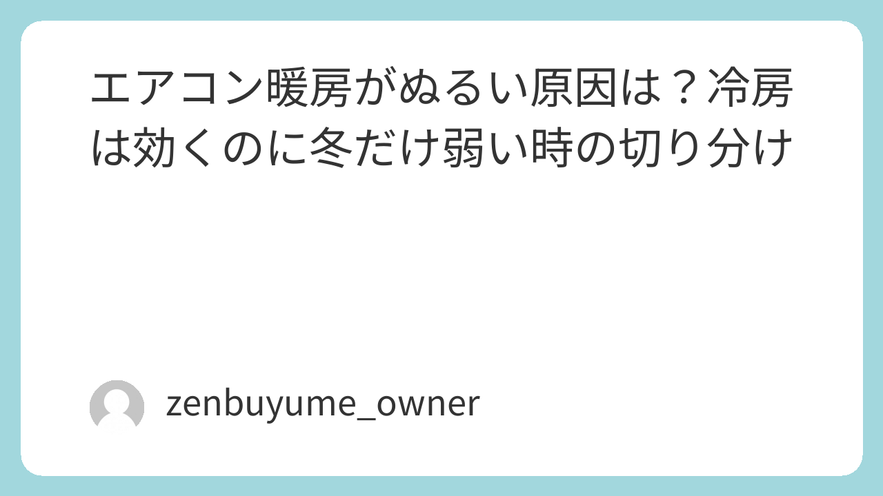 エアコン暖房がぬるい原因は?冷房は効くのに冬だけ弱い時の切り分け