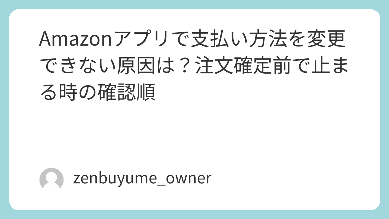 Amazonアプリで支払い方法を変更しようとしても進まない、注文確定前で止まる場合は、原因がカード側の制限なのか、請求先情報の不一致なのか、Amazonアプリ側の不具合なのかを切り分けるのが近道です。