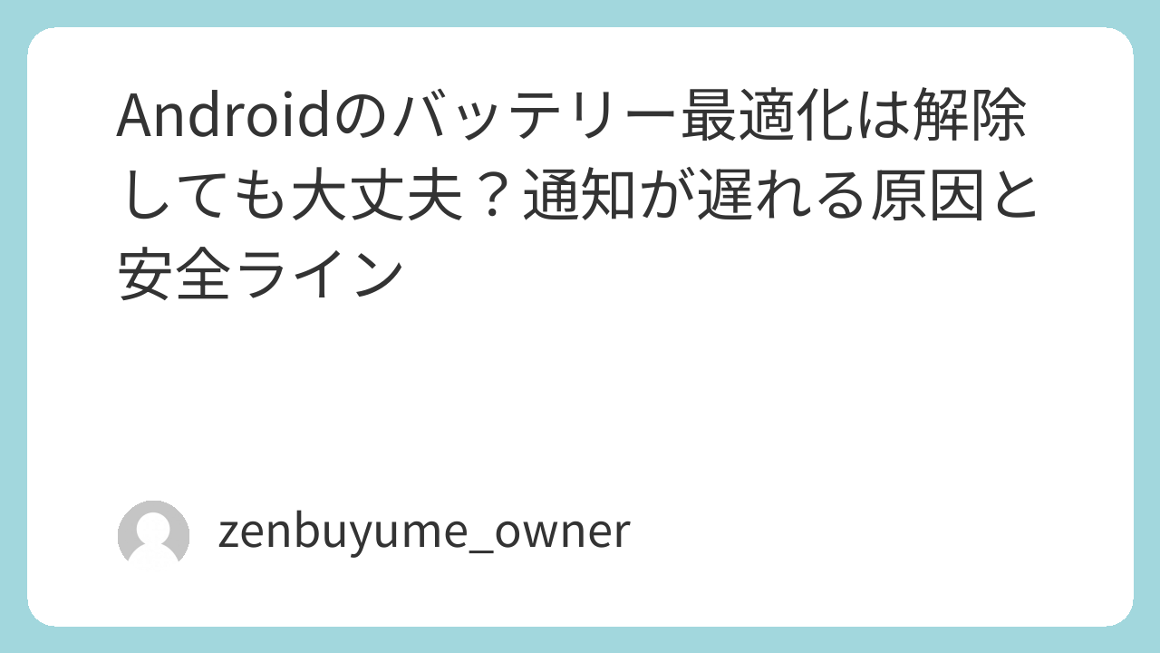 Androidで通知が遅れるとき、「バッテリー最適化を解除しても大丈夫?」が一番気になるポイントです。この記事「Androidのバッテリー最適化は解除しても大丈夫?通知が遅れる原因と安全ライン」では、最適化の仕組みと通知遅延の関係、そして解除していい範囲(安全ライン)をアプリの種類ごとに整理します。