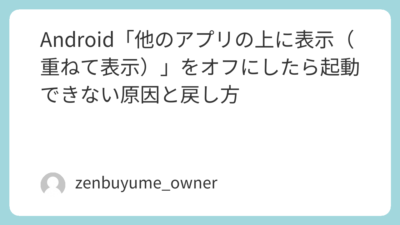 Androidで「他のアプリの上に表示(重ねて表示)」をオフにしたら、アプリが起動しない/画面が進まない。急に起きると不安になります。