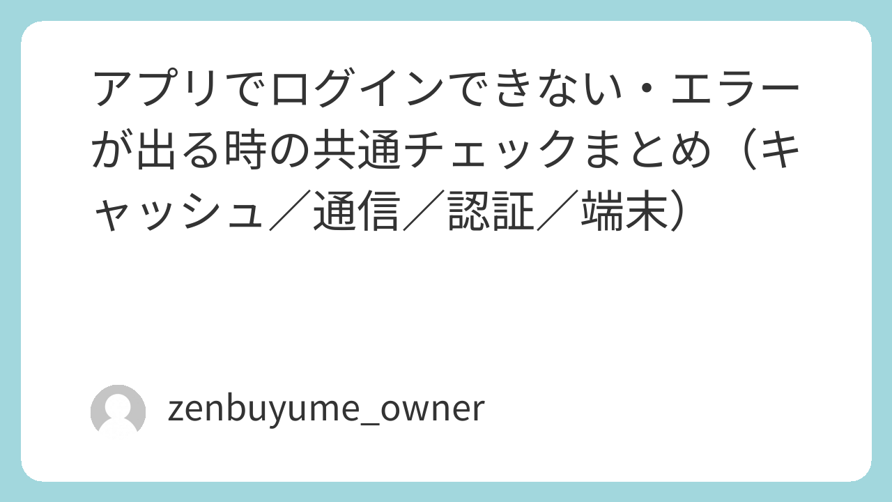 ログインできない時だけでなく、開かない・起動しない・一部機能だけ動かない時にも、この順で見ると切り分けしやすいです。