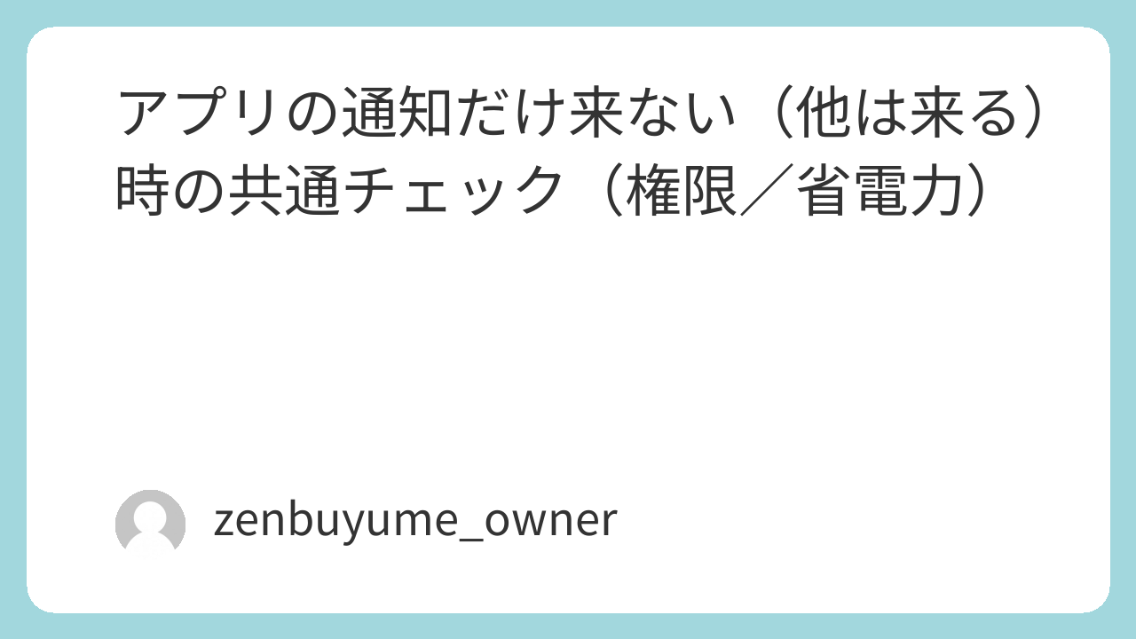 特定アプリ通知だけ来ない場合は、通知権限 → 省電力設定 → アプリ内通知の順で確認すると解決しやすいです。