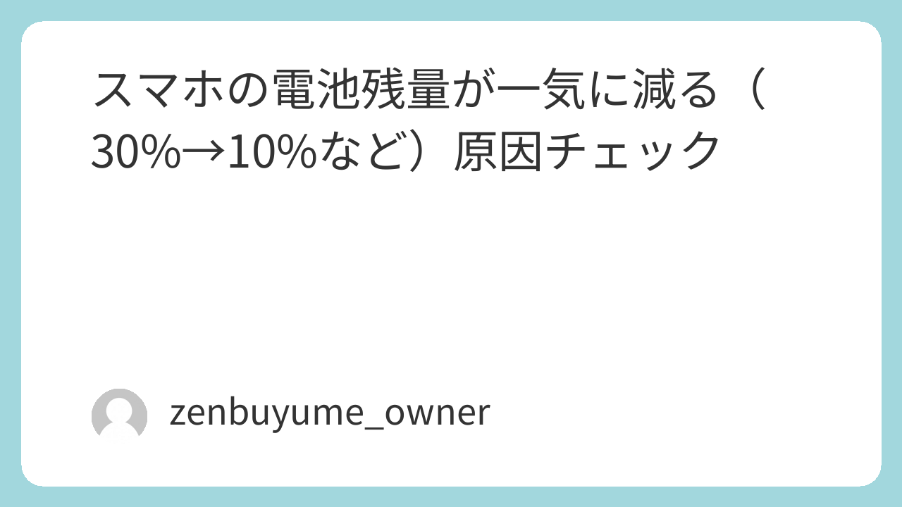 **スマホの電池残量が急に減る(30%→10%など)**場合は次の原因が多いです。