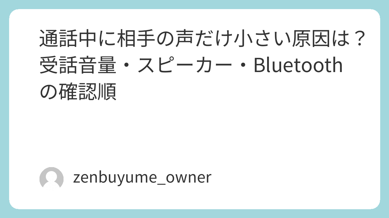 通話中に相手の声だけ小さい時は、自分の声が届かない問題ではなく、受話側(自分の聞こえ方)の問題を先に疑うと切り分けが早いです。