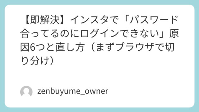 サービス操作 【即解決】インスタで「パスワード合ってるのにログインできない」原因6つと直し方(まずブラウザで切り分け)