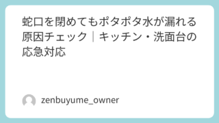 蛇口を閉めてもポタポタ水が漏れる原因と応急処置を解説。パッキンやカートリッジの劣化、接続部のゆるみの見分け方と、今すぐ止水した方がいい状態、本体交換の判断ポイントまでまとめています。