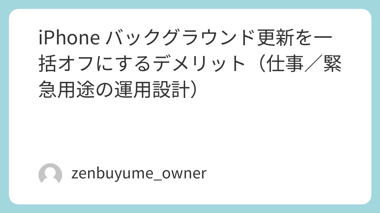 バックグラウンド更新の一括オフは節約に効く一方、仕事・緊急用途では**“必要な瞬間に必要情報へ到達する手数”が増えて損失につながる**ことがあります。