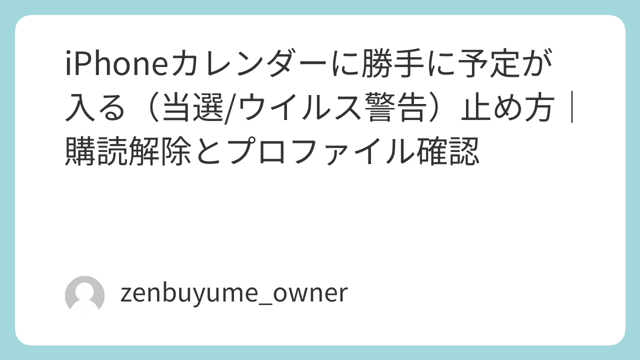 | 予定が毎日/大量に増える、同系統の文言が並ぶ | 迷惑カレンダーの購読 | 購読解除(Unsubscribe)→(必要なら)購読カレンダー削除 |