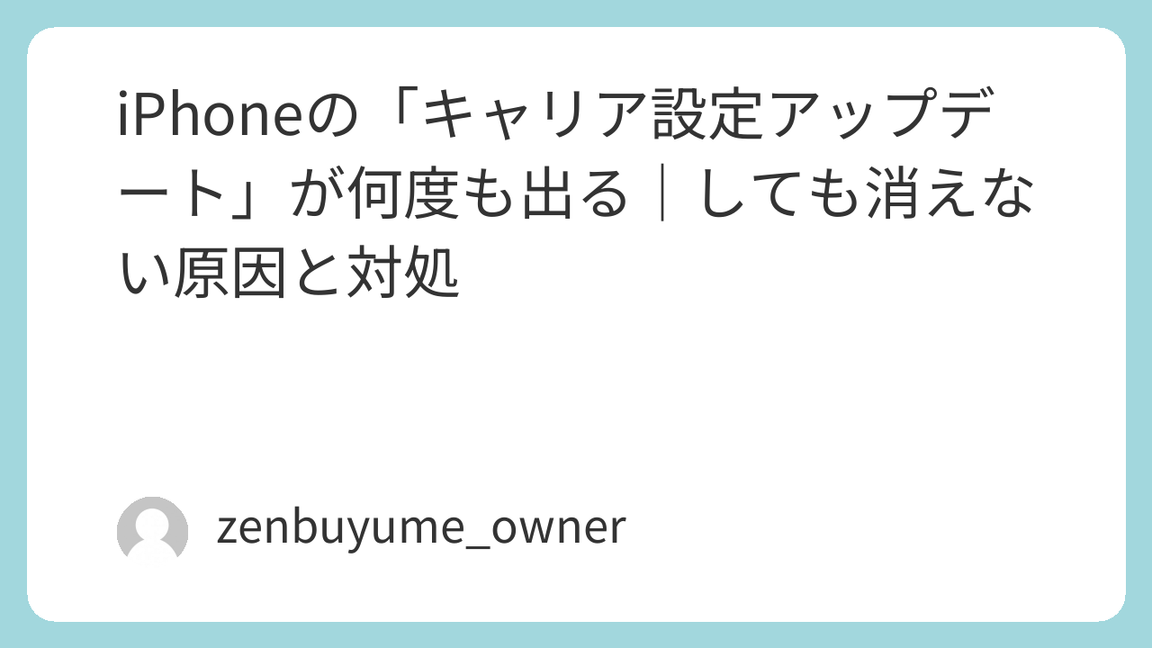 iPhoneの「キャリア設定アップデート」が何度も出るのは、反映遅れ・再検知・eSIM/回線切替・VPN/プロファイル干渉・キャリア側再配信などが主因です。
