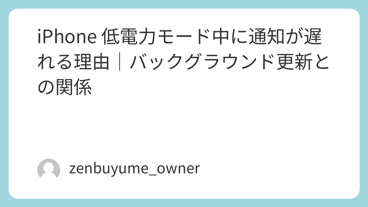 低電力モード中ではなく、通常時にバックグラウンド更新をオフにしたことが原因で通知が遅れている可能性もあります。バックグラウンド更新をオフにした場合の通知への影響もあわせて確認しておくと切り分けが確実です。