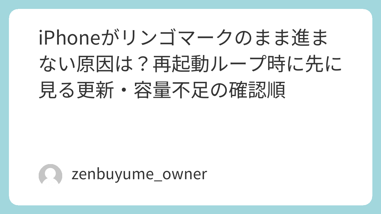 iPhoneがリンゴマークのまま進まない原因は?再起動ループ時に先に見る更新・容量不足の確認順