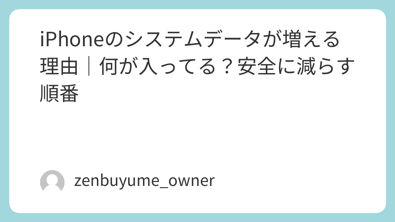 iPhoneのストレージで「システムデータ」がどんどん増えて、何を消しても減らない。写真もアプリも整理したのに空きが増えないと、正体が分からず不安になります。
