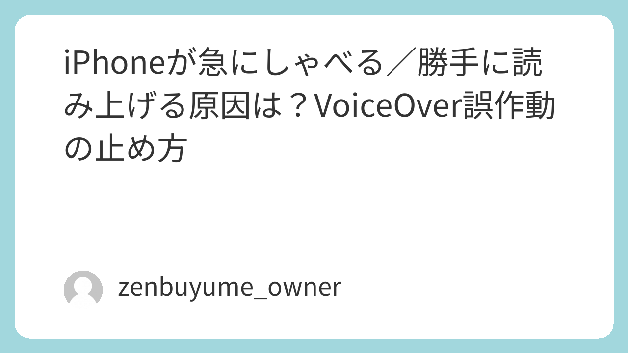 iPhoneが突然しゃべり出す、画面の項目を読み上げる、操作のたびに音声が出る──この状態は、故障ではなく「VoiceOver(ボイスオーバー)」がオンになっている可能性が高いです。