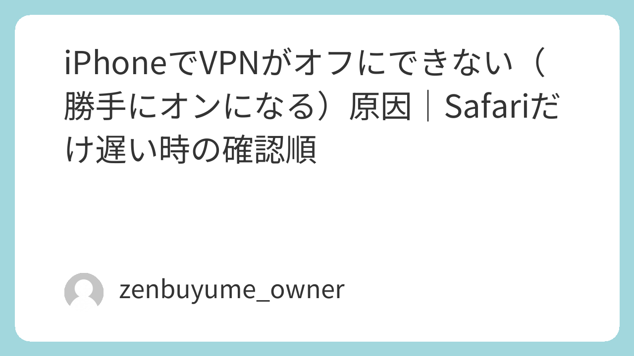 iPhoneでVPNをオフにしても消えない/勝手にオンになる、さらにSafariだけ遅い・開かないといった症状は、「VPNのスイッチ」ではなくVPNを有効にしている“元”が別にあるせいで起きがちです。切り分けを先にやれば、無限にトグルを触る沼から抜けられます。