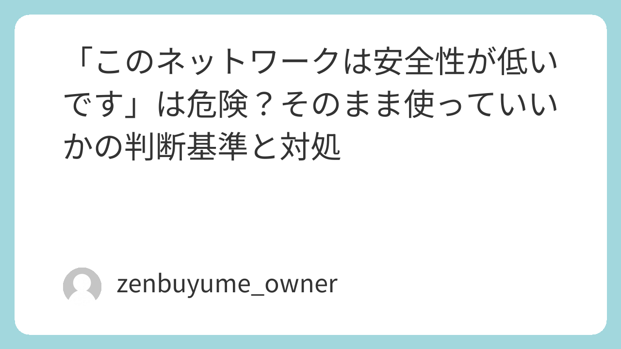 「このネットワークは安全性が低いです」と表示されると、不安になりますよね。