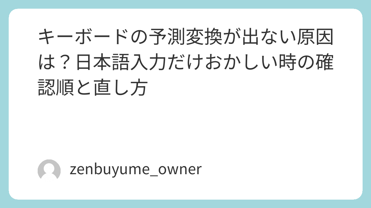 ※この記事は「入力が遅い・重い」ではなく、予測変換の候補が出ない/日本語入力だけおかしい症状に絞って解説します。
