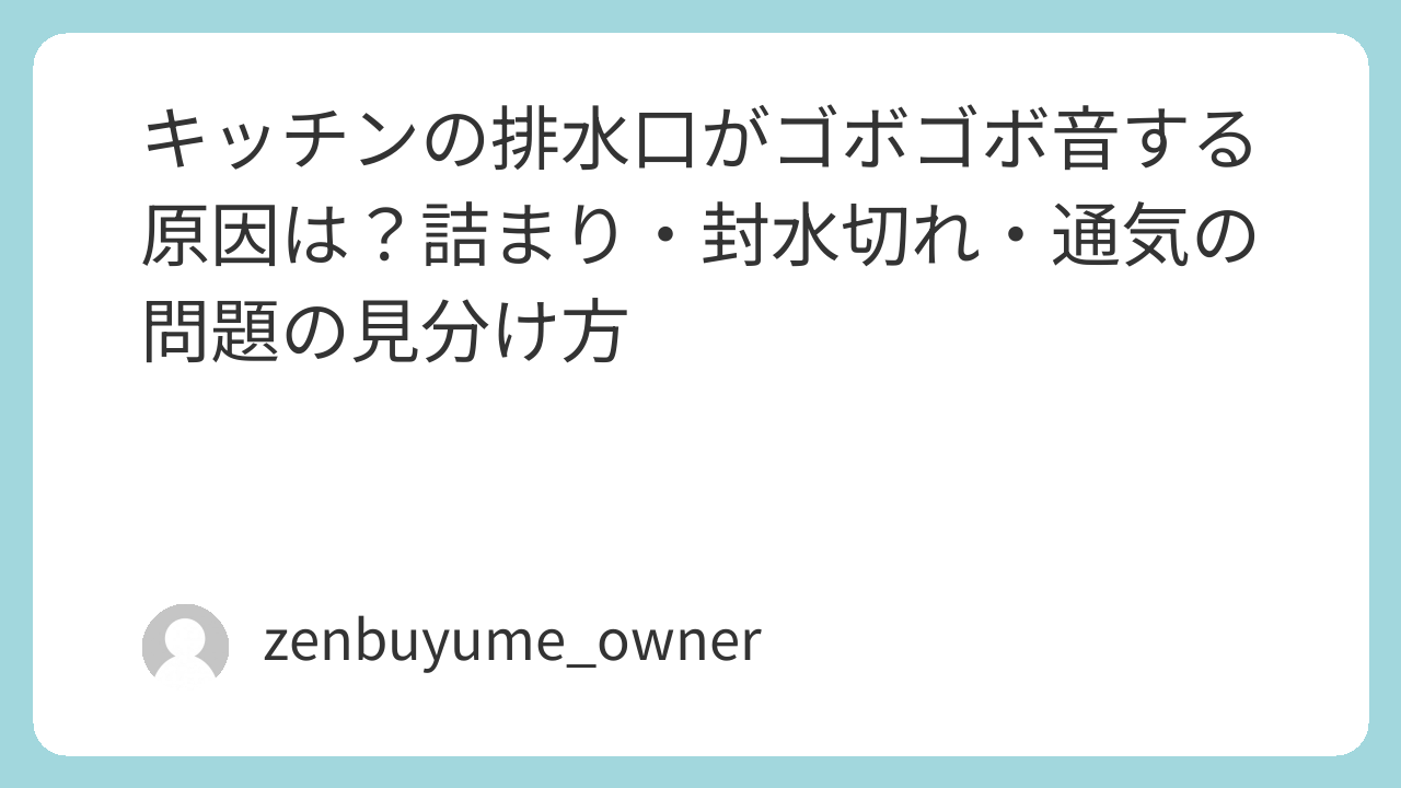 キッチン排水口のゴボゴボ音は、**詰まり/封水(ふうすい)切れ/通気の問題(または排水管側の抵抗)**で説明できることが多いです。