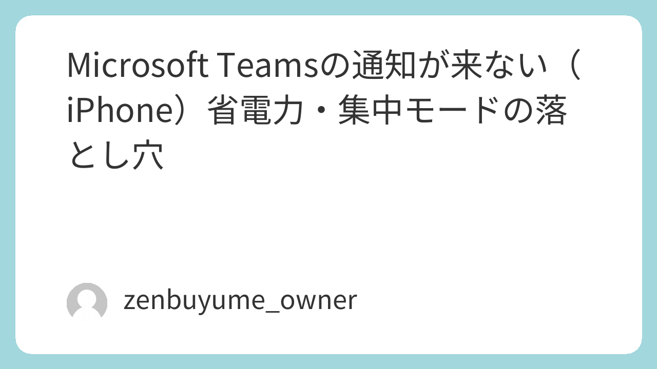 ※この記事はMicrosoft Teamsの通知トラブルに限定します。他のアプリも同時に来ない場合は、iPhone通知の共通チェックで全体原因を先に切り分けてください。