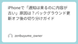 バッジだけでなく通知表示そのものも不安定な場合は、【まずここ】iPhoneで通知が来ない時の共通チェック10項目(特定アプリだけ/ロック画面だけ出ないも対応) も確認しておくと整理しやすいです。