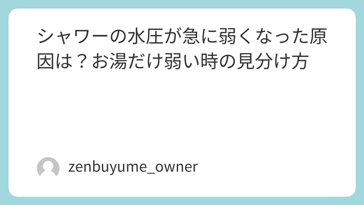 シャワーの水圧が急に弱くなった場合、まず見るべきは