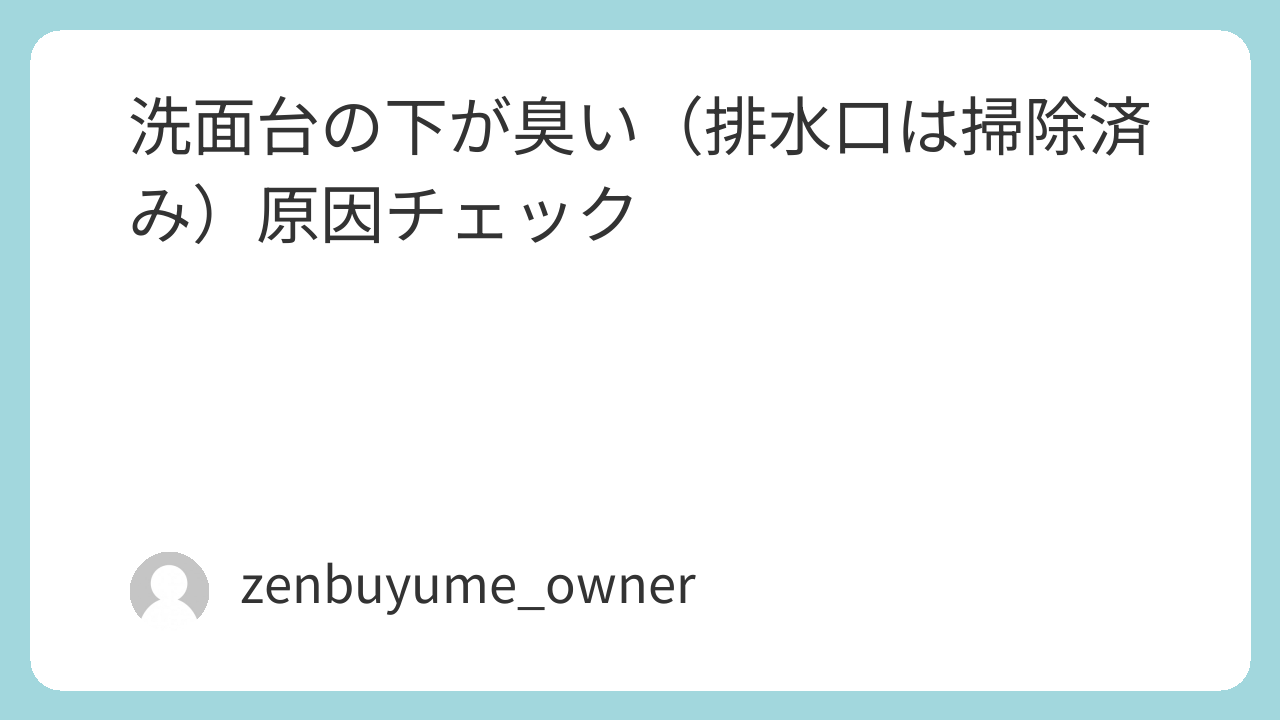 洗面台の下が臭い(排水口は掃除済み)場合、主な原因は次の通りです。
