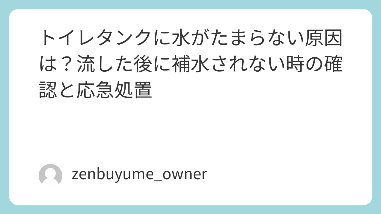 ※この記事は「流れが弱い」「水位が低い」ではなく、流した後にタンクへ水が戻らず、補水されない症状だけに絞って解説します。