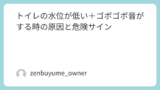 同じタンク内部の部品トラブルで水が止まらない側の症状が出ることもあるため、トイレの水が止まらない原因と応急処置|流した後もチョロチョロ音がする時の見分け方 もあわせて見ておくと部品系の切り分けがしやすいです。