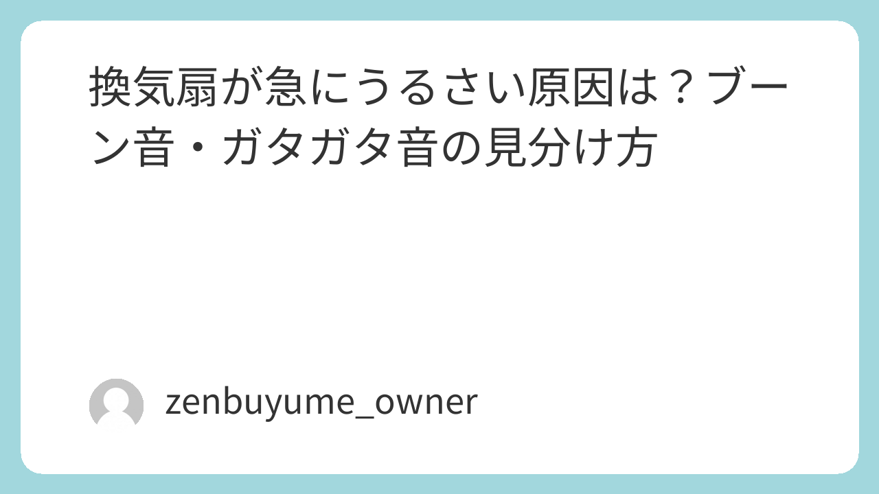 換気扇が急にうるさくなった場合、まずやるべきことは「音の種類」で原因を切り分けることです。