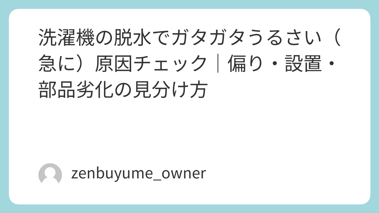 洗濯機の脱水時のガタガタ音は、①洗濯物の偏り ②設置の問題 ③部品の劣化のどれかで説明できることがほとんどです。