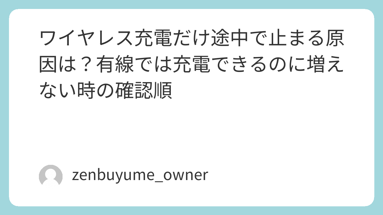 まずは、有線では問題ないのにワイヤレス充電だけ途中で止まる状態かどうかを確認すると、原因を絞りやすくなります。